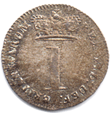 1820 Maundy 1d - Obv. NO stops in legend (Normal) Rev. Large crown above the (denomination) 1 (See difference) NO stop after REX, colon dots after FID :, colon dots after DEF : (The 'extra' stop that was on 1817 & 1818 reverse after DEF has now been removed) NO stop after BRIT~UM Deeply toned Choice pAS