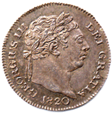 1820 Maundy 1d - Obv. NO stops in legend (Normal) Rev. Small crown above the (denomination) 1 (See difference) The small crown issue is much scarcer than the large crown type NO stop after REX, colon dots after FID :, colon dots after DEF : (The 'extra' stop that was on 1817 & 1818 reverse after DEF has now been removed) NO stop after BRIT~UM Deeply toned Choice pAS