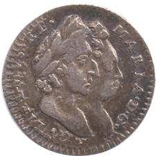 1694 Maundy 2d Obv. Only the left side of the coin has part of the reverse.