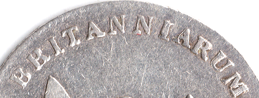 Several of the letters of BRITANNIARUM have been repaired or strengthened:
