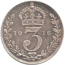 1916 Maundy 3d - Choice gold / green tone. Both sides are 'prooflike' pAS