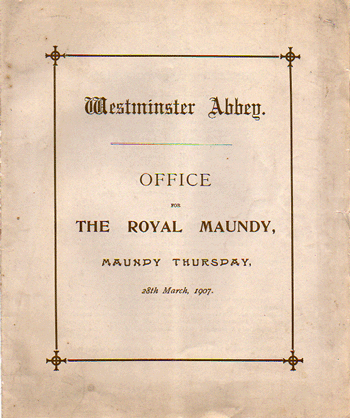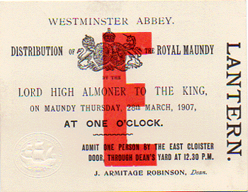 1907 Admit one person 'pass' & program for the distribution of Maundy at