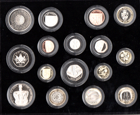 16-piece limited edition 2013 Proof Coin SetDue to the prices that the Royal Mint have been charging for their gold, silver, commemorative coins as well as the year type Proof and Uncirculated sets - we have stopped buying or stocking their latest products UNTIL we can purchase them through the secondary market. We have now obtained just ONE set of the SELL OUT 2013 United Kingdom Premium proof set in its original box, packaging and paper work. There was a limited edition of 4,000 and this set is number 1850. The set consists of the Coronation £5, the Guinea £2, 2 x London Underground £2, 2 x Floral £1, & 1 x Ironside 50 pence plus the very special 2013 Premium medallion (top left corner of the set) [Crown size]. Plus all 8 definitive coins from the 1 penny up to the £1. There is also the 7 Coin Commemorative (ONLY) proof set: The set consists of the Coronation £5, the Guinea £2, 2 x London Underground £2, 2 x Floral £1, & 1 x Ironside 50 pence.