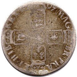 1697 Shilling 3rd bust Obv. Solder mark at top (Fair ?)