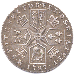1787 Shilling - Rev. NO hearts. Light tone EF