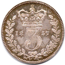 ST 1857 Db - Obv.1 (With normal "C" & full Roman "I") As per normal die since 1838. (F: D: Type - Ab) The O of VICTORIA is open at the top The 2nd I of VICTORIA is double struck (slightly sideways and looks very slightly light a condensed X ! Date: 1 over 1 & slightly larger 5. See 1857 date style fonts. Grade: Choice golden tone 'Prooflike' pAS
