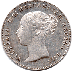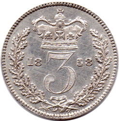 ST 1858 Ac - Obv.1A (F: D: Type - Ac) Hair-line scratch on Victoria's cheek (so thin it virtually does not show up on the scan). A slightly polished die - possibly a remainder from a Maundy blank !? Rev. Slight ghosting from a die clash. Date: Largish '58' over '58'. Repair to the back of the 5 See 1858 date varieties Grade: Bright EF?