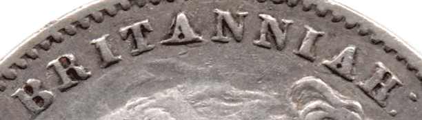ST 1862 D - Obv.2 [As obv. type N] - D. G. (Only the bottom colon dots are clear) F. D. (Only the bottom colon dot is clear after F.) (Only the top colon dot is clear after D.) However, by tilting the coin at various angles one can just make out very faint lower colon dots ! More interestingly is that the last R of BRITANNIAR has been over struck on an other letter ! After careful examination my conclusion is that the R is over an inverted R (which would make sense that the letter is correct but inverted by accident). Another possibility was considered R over N but that seems less likely. Therefore the variety has been classified as: - "2nd R of BRITANNIAR over inverted R". Unless someone can prove differently ! Also noted is that the F of F: D: has been double struck (repaired) and the new F is in a slightly lower and backward position. The F only has lower colon dot as the higher one has not been repaired ! The D of F: D: has also been double struck and there is only the higher colon dot as the lower one has not been added. Rev. A very faint trace of a ghosted image of Victoria's head. Date: Medium width. Grade: Obv. F to possibly Fine +. Rev. VF+ Pale grey. Extremely RARE previously unlisted variety.