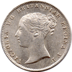 ST 1864 X - Obv. 2 (F: D: Type - X) D. G. (single lower colon dots ONLY) ! The D is Double struck. The G has a double serif at the top (double struck !) F. D. (lower colon dot after F. & upper colon dots after D. The D is Double struck. Plus there is an additional colon dot - above and to the left of the F - just below the border teeth - RED arrow. Faint hair-line scratch on Victoria's cheek just below her ear - 2.5 mm. Rev. A Date: normal size - Flat top 4 Grade: Bright EF/EF+