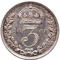 ST 1888 A 5 + C (Listed by Davies 1332 1 + A marked as * - meaning UNSEEN). Obv. Very slight EXTRA metal on the inside of the rim at 4 to 6 o'clock This is the 2nd example I have found. All 1888's in high grade are scarce to very scarce. This obverse type it is probably rare. Grade: A pale reddish greenish tone. pAS