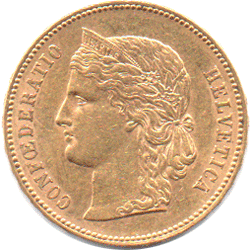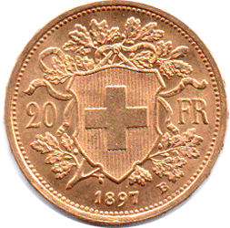 1897 Switzerland 20 Francs (Young head) [0.1867 AGW] Issued from 1897 to 1935