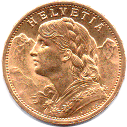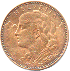 1914 Switzerland 00 Francs (Young head) [0.09335 AGW] ONLY Issued from 1911 to 1922 (only 7 dates) Scarce