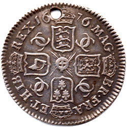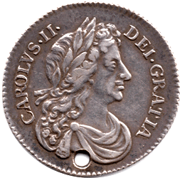 1676 Charles II - Sixpence - Small hole at base otherwise in excellent condition.