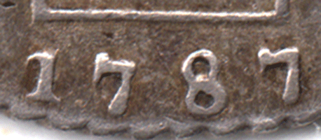 1787 Sixpence - Rev. With 6 hearts in shield.