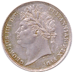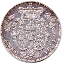 1821 Sixpence - Obv. Greyish with gold green tone around legend. Rev. Part toned EF+