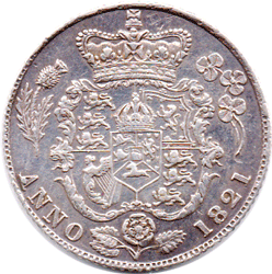 1821 Sixpence - Rev. Tiny scratch in field above crown to the right of the cross.