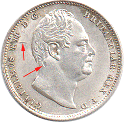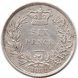 1831 Sixpence - Obv. A couple of small scuffs in IIII & between IIII & back of head (10 o'clock). There is also a small indent just below William's hair line, at the back of his neck. Otherwise the head strike is choice (EF+). Traces of toning in the legend. Rev. Brownish grey all over tone (EF+)