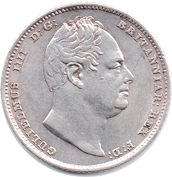1834 Sixpence - Obv. A tiny pin-head size indent on William's cheek, midway between ear & nose.