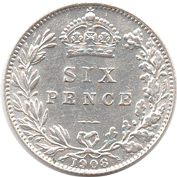 1908 Sixpence - Bright EF
