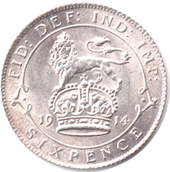 1914 A Sixpence - Obv. Reasonably well struck head - for issue Bright pAS