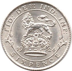 1924 A Sixpence - Obv. A well struck head strike for issue