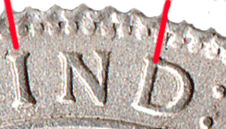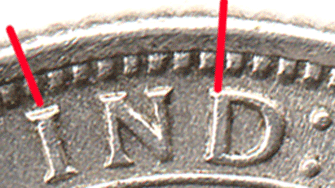 1925 Sixpence Reverse B (1st issue for 1925) is as per the issue from 1911. It has a narrow rim. The alignment of the letter to the border teeth are another way of determining which is reverse B or C. Rev. B has the I of IND pointing to a gap between teeth & the D of IND pointing to a border tooth Reverse C (2nd issue for 1925) is new. The border rim is now broader and thicker. The Lion & the Crown are also slightly larger in size. The alignment of the letters to the border teeth are also slightly different. Rev. C has the I of IND pointing to a tooth & the D of IND pointing to a gap between two border teeth.