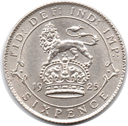 1925 A Sixpence - 2 + B Obv. A reasonably well struck head strike for issue