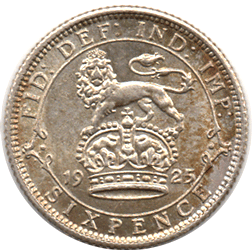 1925 B Sixpence - 3 + C Obv. A reasonably well struck head strike for issue - Light tone