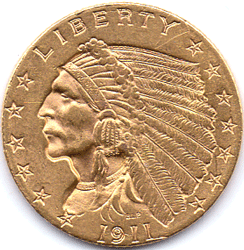 A nice quality gold 1911 USA 2 ½ Dollars.