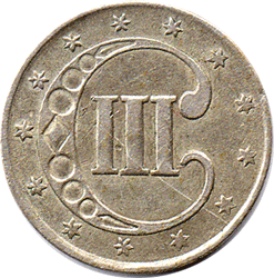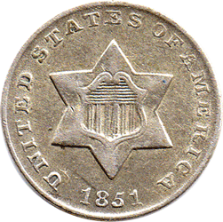 1851 USA - 3 Cents (Silver) Rev. A very fine hair-line scratch from 4 o'clock - diagonally up to the III. The scratch is really only visible with a magnifier. Not really clear to the naked eye except when the coin is tilted to a certain angle ! Otherwise pleasant coin EF?