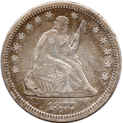 1877 CC USA - 25 Cents - (Carson City). Obv. Very slight pitting on Seated Liberty