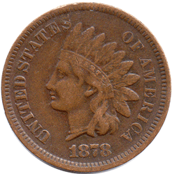 1878 USA - 1 Cent Obv. B of LIBERTY unclear as there is a tiny scuff mark on the letter.