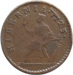 1723 - Wood's Hibernia - Farthing Rev. Die crack/flaw at top of 1 &7 of date. F1 Date: 3 double struck £60.00