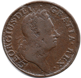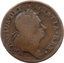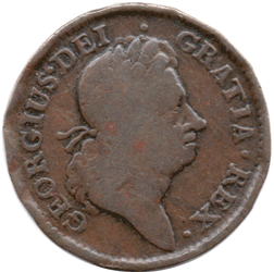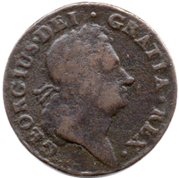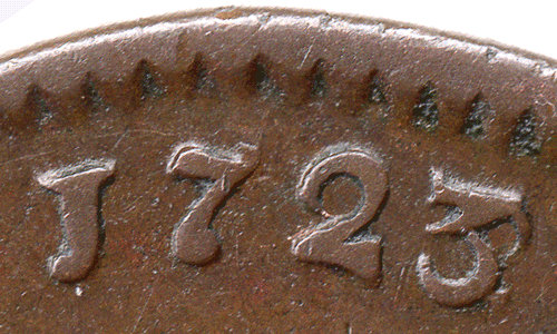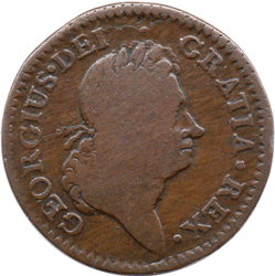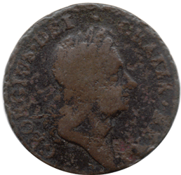 H7 1723 - Wood's Hibernia - Halfpenny (Normal flan 25 mm) [6.7 grams] Rev. NO Stop before HIBERNIA (Normal type) Obv. Fine but dark and claggy. Rev. Fair-Fine dark and claggy £15.00 The scans of this coin have been lightened so one can see beneath the darkness
