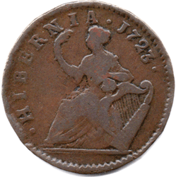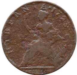 1723 - Wood's Hibernia - Halfpenny (Normal flan 25 mm) [6.6 grams] Rev. NO Stop before HIBERNIA (Normal type) Grade: Fair-Fine (A bit claggy) £30.00