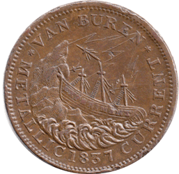 1837 USA - Hard Times Token - Obv. 1837 Van Buren Metallic Currency - Sinking ship (Experiment) hit by lightning. Rev. 1841 Webster Credit Currency Sailing ship (Constitution) Grade: EF?