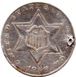1856 USA - 3 Cents (Silver) Small hole at right side (3 o'clock) VF?-VF