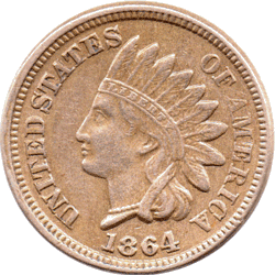1864 USA - 1 Cent 1st issue [Thick Flan] Cupro-nickle. Rev. Slight dark colouration by CENT.