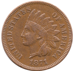1870 USA - 1 Cent Obv. Full clear LIBERTY but slightly weak on the BE