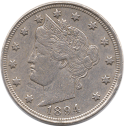 1894 USA - 5 Cents - Scarce date Grade: VF+