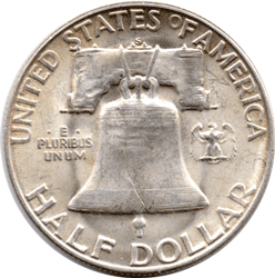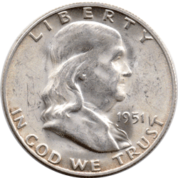 1951 S USA - 50 Cents (San Francisco) Grade: Choice, Bright & Crisp and with a hint of tone around the legend pAS (Coin better than picture !). These Franklin 50 Cent coins really do not like to be pictured as they do NOT do the coin justice !