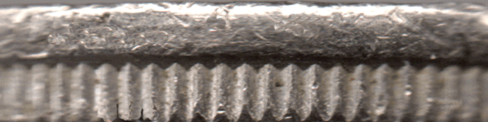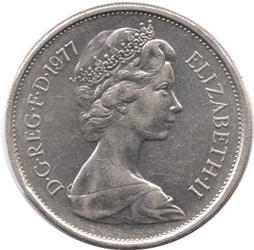 1977 10 'new' Pence - Struck part in and part out of the edging collar. Extremely unusual ! Not sure how that can happen but part of the edge has remained un-mill-edged and must have flowed above the collar !!?? I have never seen anything similar so I cannot explain it. Coins like this are rare as due to quality control and they seldom escape from the Mint. This coin is graded EF and very unusual.