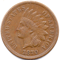 1870 USA - 1 Cent B of LIBERTY slightly weak. Grade: VF+