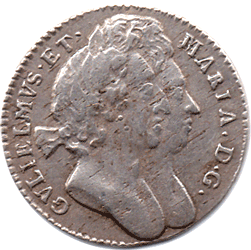 1694 Maundy Threepence - Obv. "G" below bust. A's of MARIA unbarred or inverted V's. SOLD - left as reference