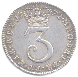 1772 Maundy 3d - Obv. Large letters (small III) - Date: