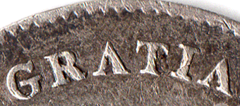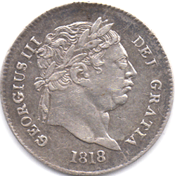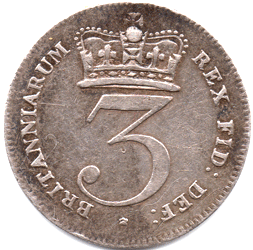 1818 Maundy 3d - Obv. The A's of GRATIA are without the centre bar. On close examination one can see that the centre bar is 'broken' This is NOT an example of inverted V's !