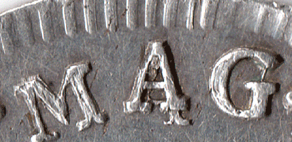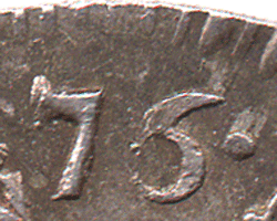 1776 Maundy 4d - The A of MAG is over another A (again a repair !) - only the right leg shows below. The B of HIB is over another letter but I cannot determine for sure what it might be - If anyone can come up with a plausible explanation I shall be pleased to hear from them. The R of REX has the same 'bit' in the top part of the letter as the top part of B !!? I have seen these repair errors on ALL 1776 4d's so far. The 'defective' 6 as been offered by some people as a rare example of a 1775 Maundy 4d. Do not be fooled - there is NO 1775 Maundy 4d.