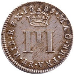1685 Maundy 3d - Rev. Very slight "metal-theft" at base of centre I of III
