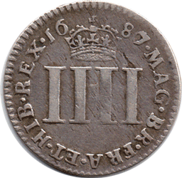 1687 Maundy 4d. Date: 7 over 6 (So far all known examples of 1687 4d's are over 6 !) F-F+