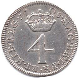 M4 1708 - Obv. 2nd bust type. Both sides show the result of the obverse & reverse dies - clashing badly. It is very obvious with most of the reverse legend showing (in reverse) around the obverse legend. Less obvious on the reverse - only around BRI Bright coin EF